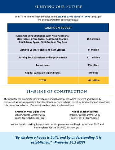 The $11 million we intend to raise in the Room to Grow, Space to Thrive campaign
